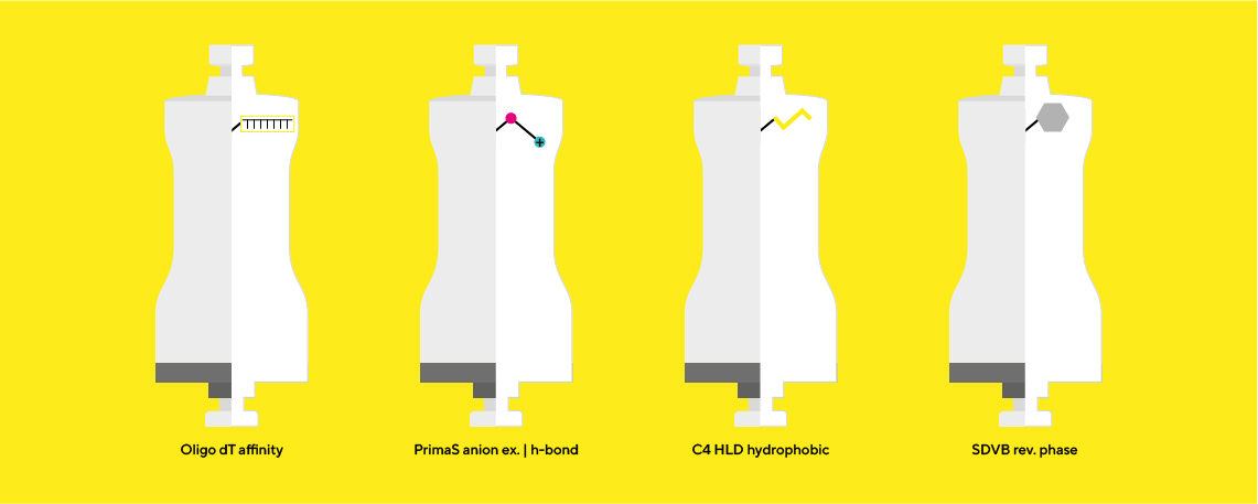 我們的一系列整體柱由獨特但互補的化學(xué)成分加持,可適應(yīng)任何應(yīng)用。找到最適合mRNA生產(chǎn)工藝的組合。 ??