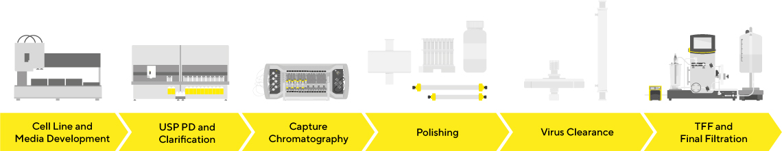 親和捕獲方案需要可與上游灌流工藝輕松銜接的半連續(xù)捕獲能力,同時具備以下特點: